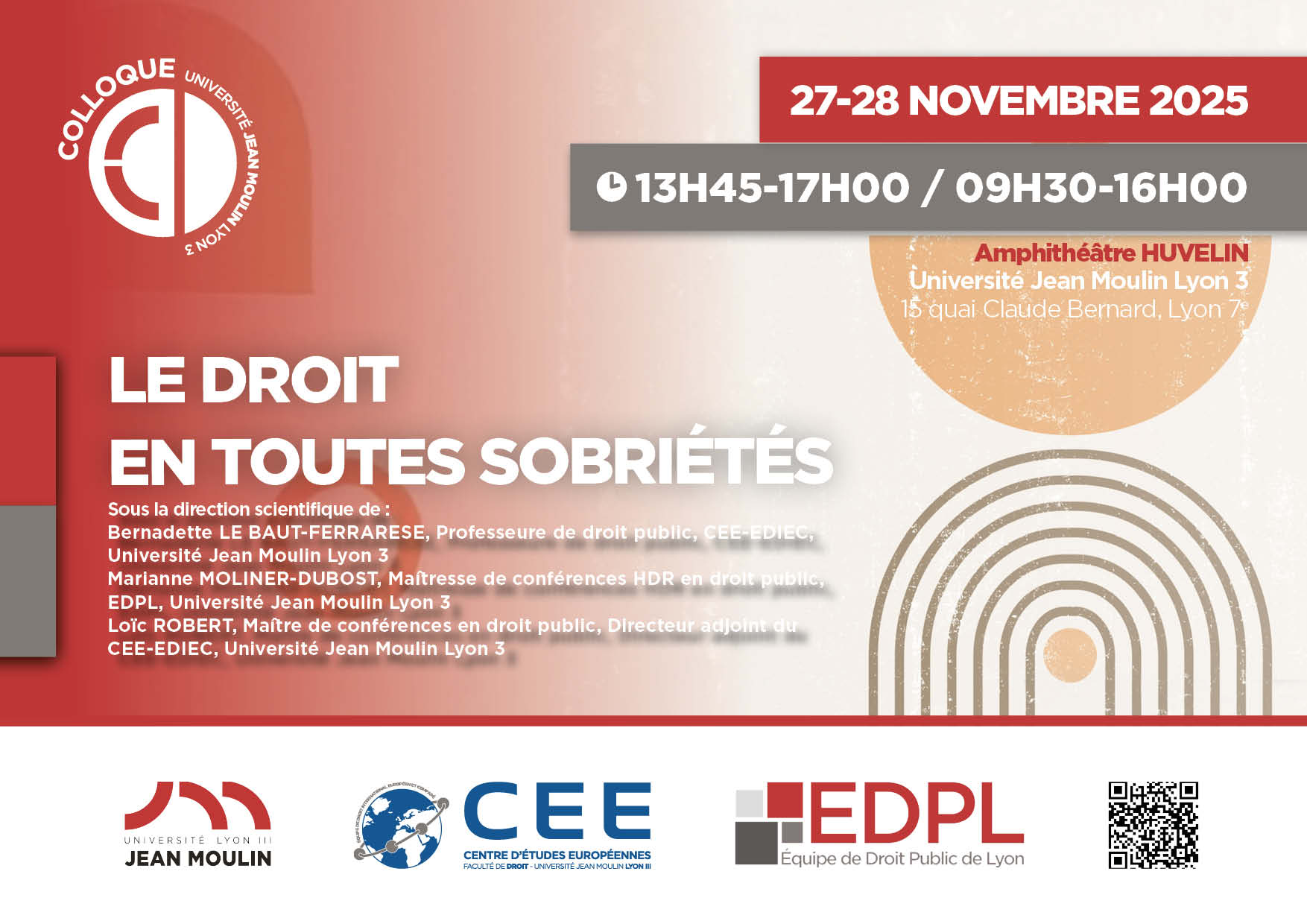 Colloque organisé par le CEE-EDIEC et l'EDPL, sous la direction scientifique de Bernadette LE BAUT-FERRARESE (Professeure de droit public, CEE-EDIEC), Marianne MOLINER-DUBOST (Maîtresse de conférences HDR en droit public, EDPL) et Loïc ROBERT (Maître de conférences en droit public, CEE-EDIEC)
