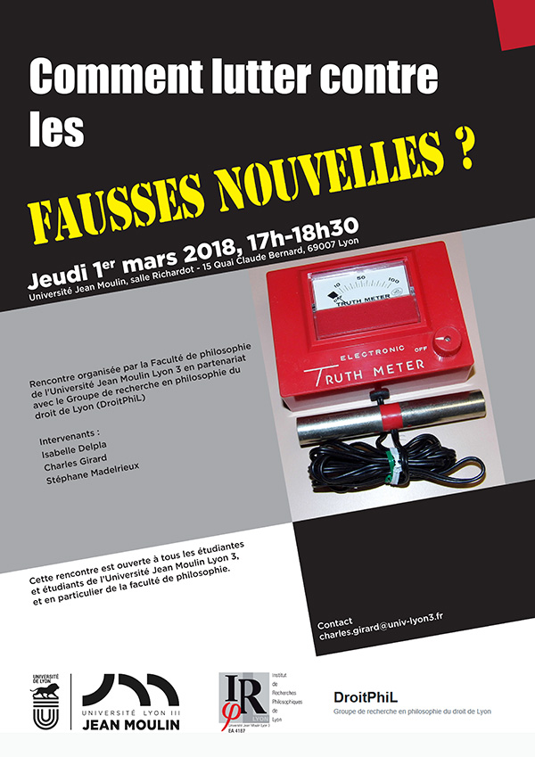 Rencontre organisée par la Faculté de philosophie de l’Université Jean Moulin Lyon 3.